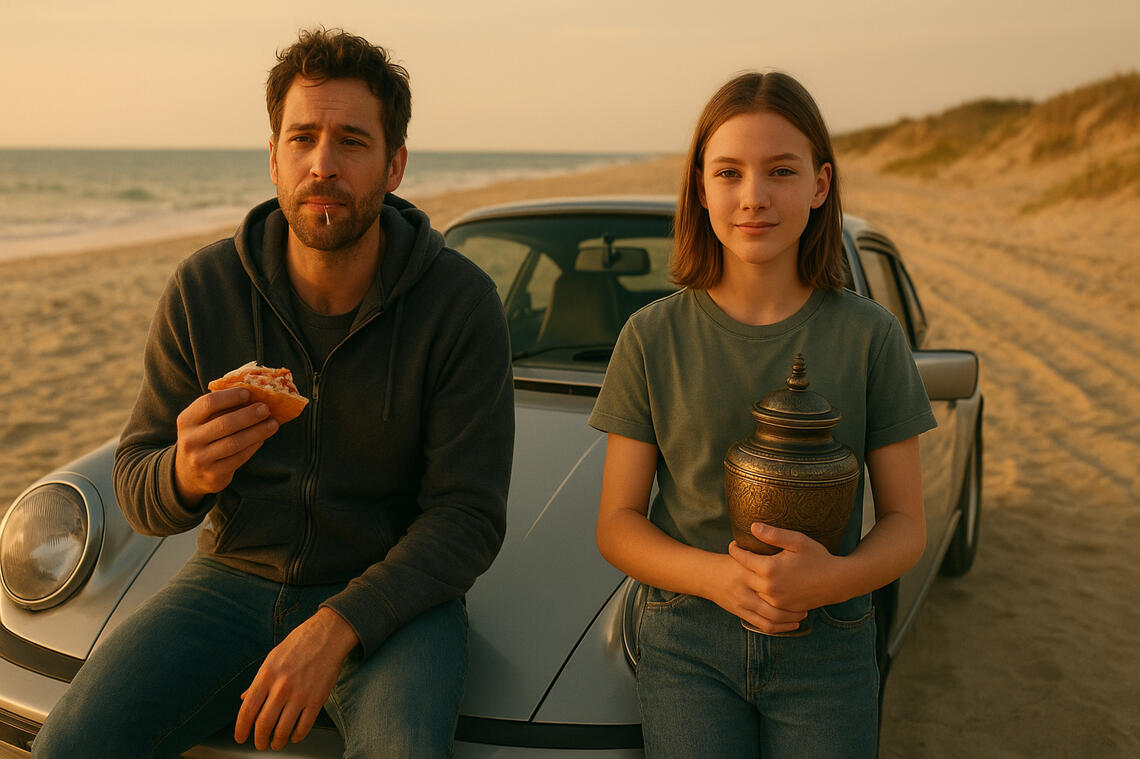 After the sudden death of his boyfriend, manchild Benjy finds himself the unwilling passenger in a ‘borrowed’ Porsche driven by precocious teen Phoebe, who’s mourning the loss of her father. With stolen urns in their laps and bickering grandmothers in hot pursuit, the mismatched duo postpone grief on a chaotic road trip around Cape Cod.
